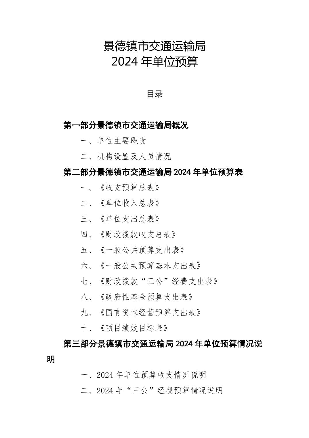 景德镇市交通运输局(本级)2024年单位预算