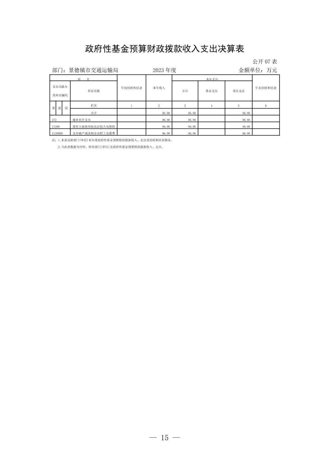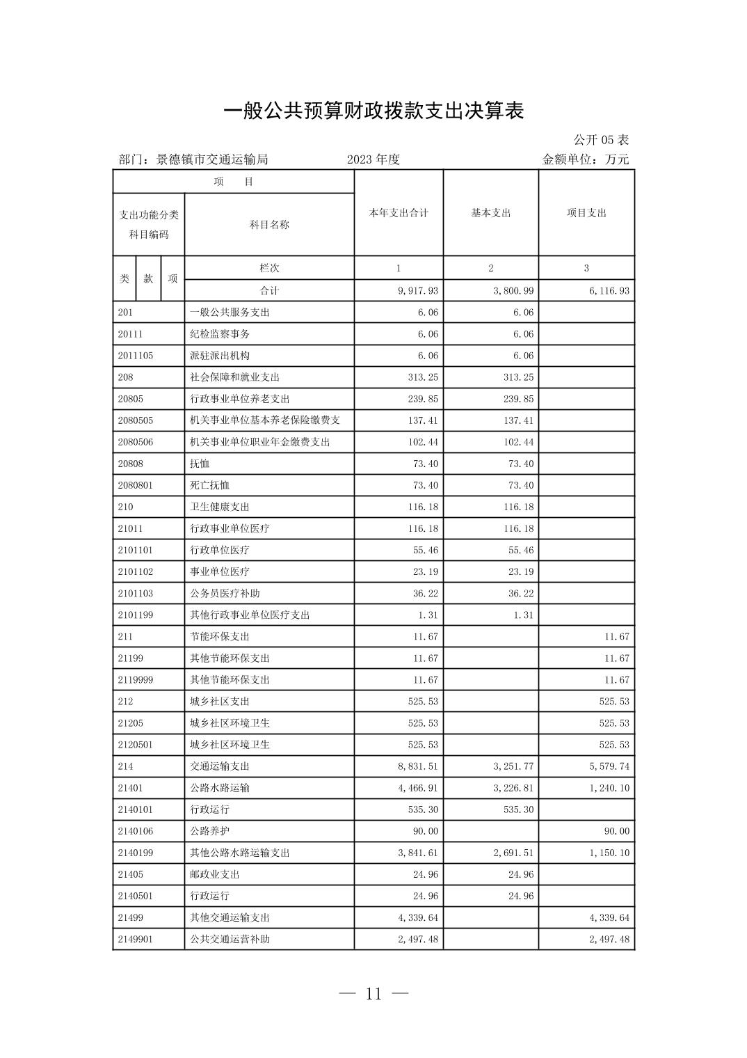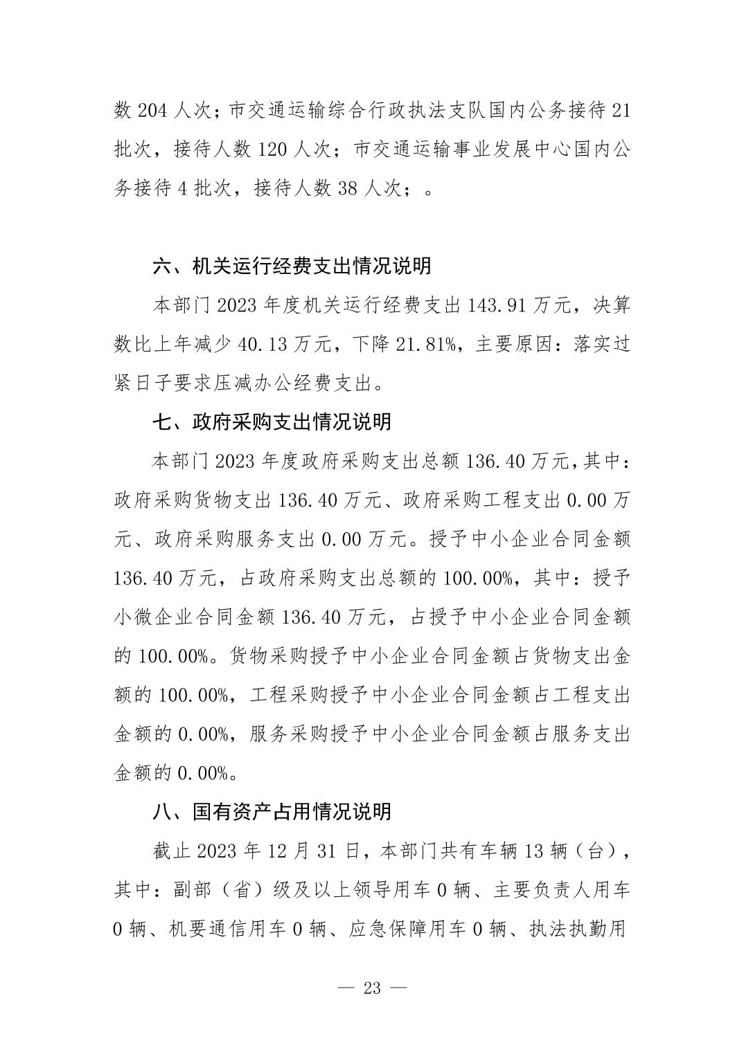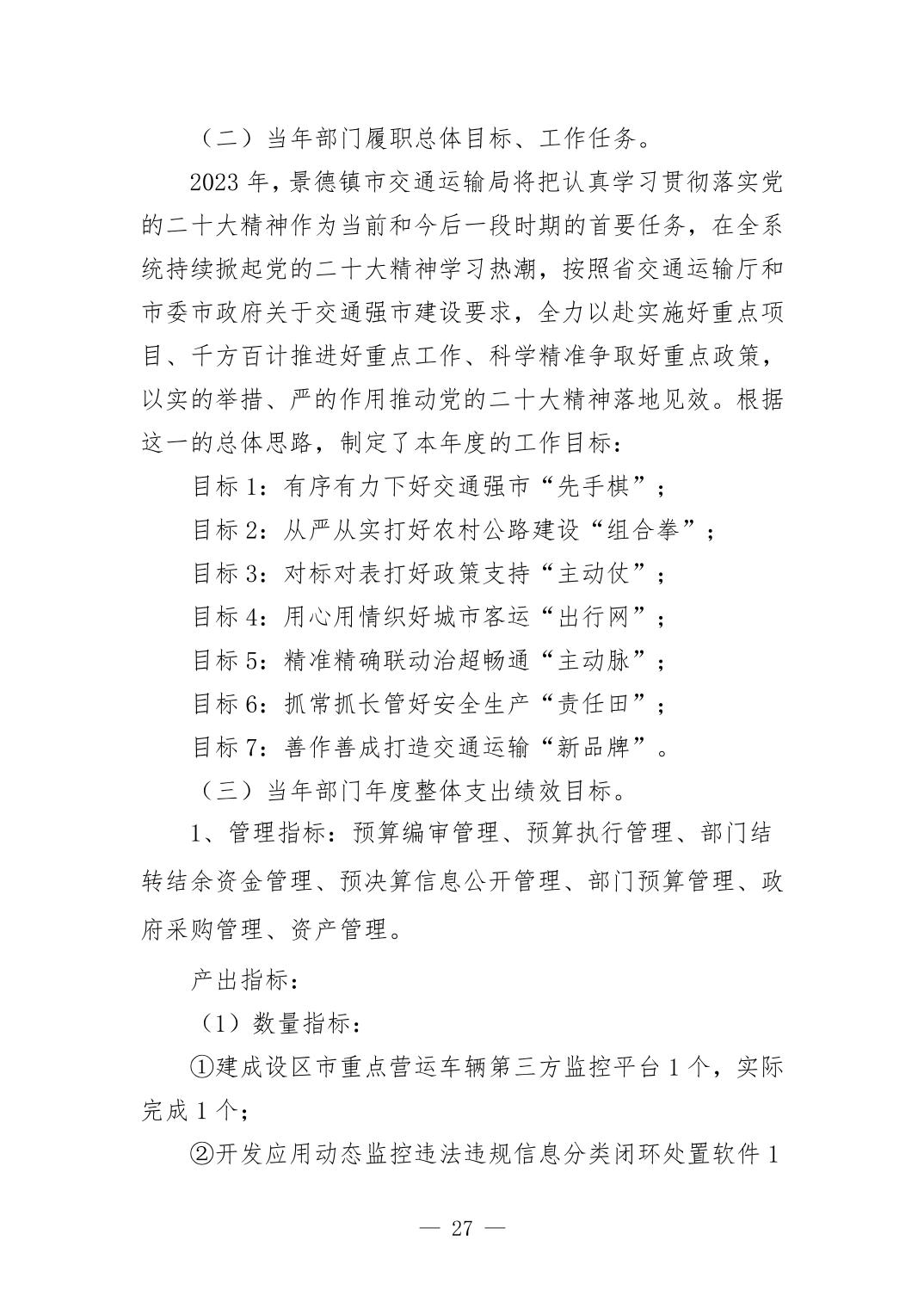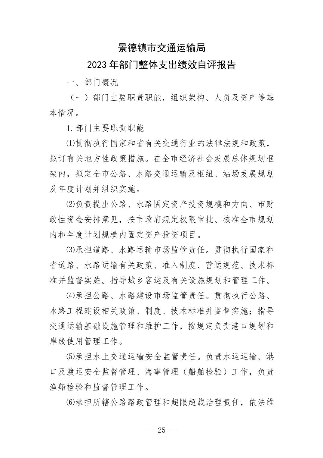 景德镇市交通运输局2023年部门决算