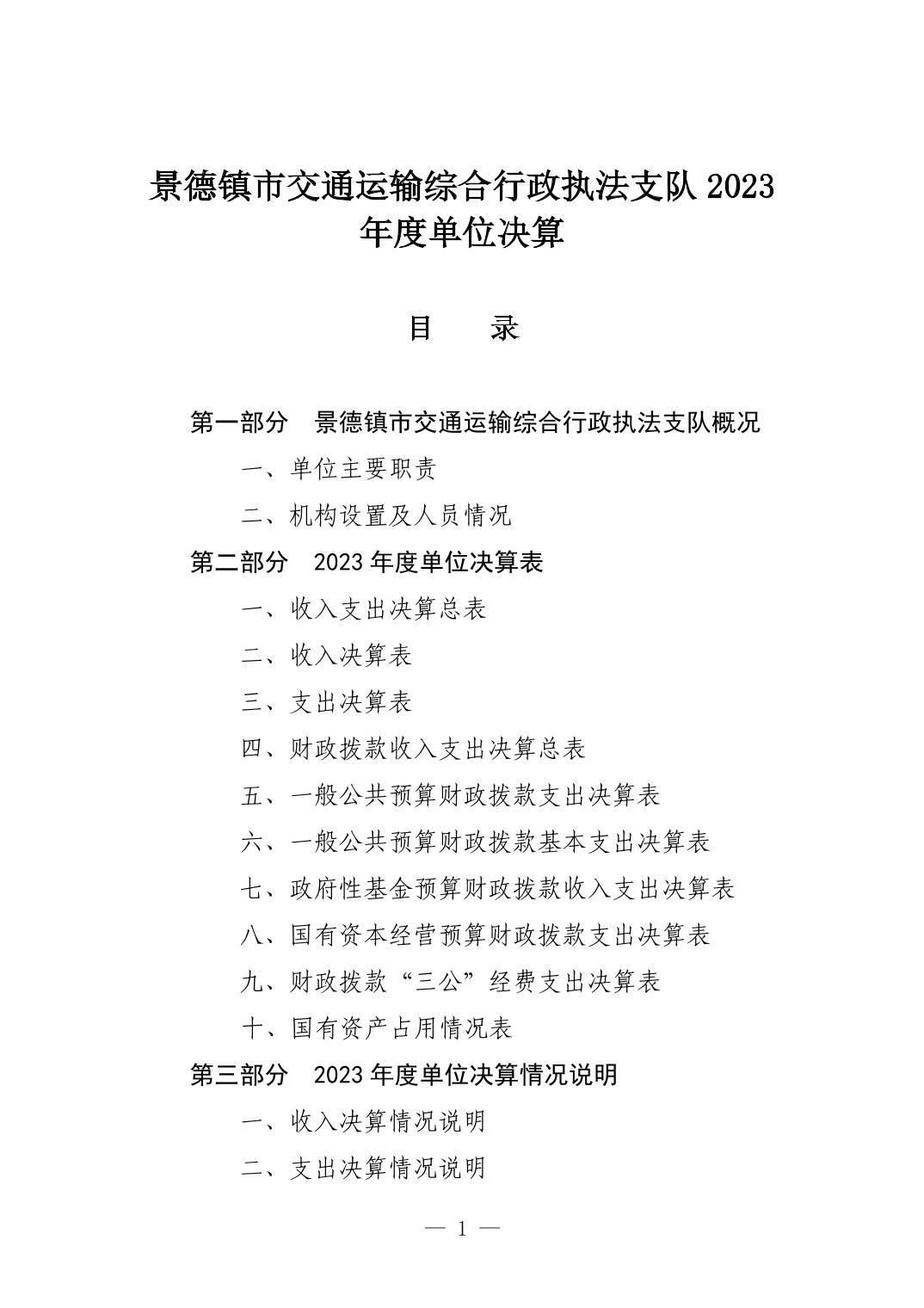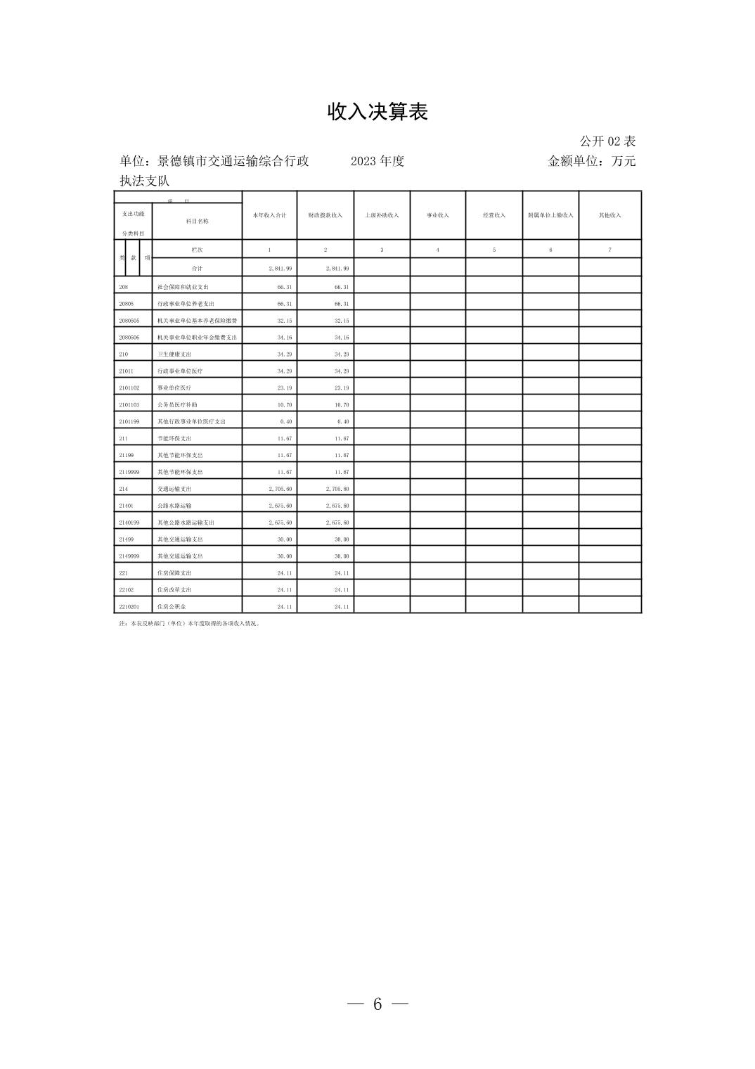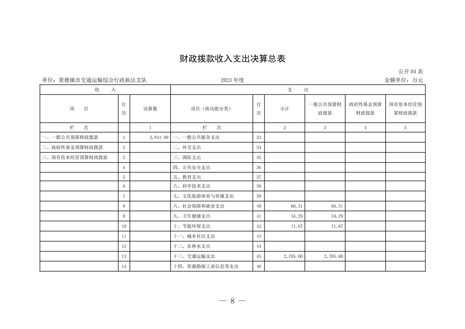 景德镇市交通运输综合行政执法支队2023年单位决算