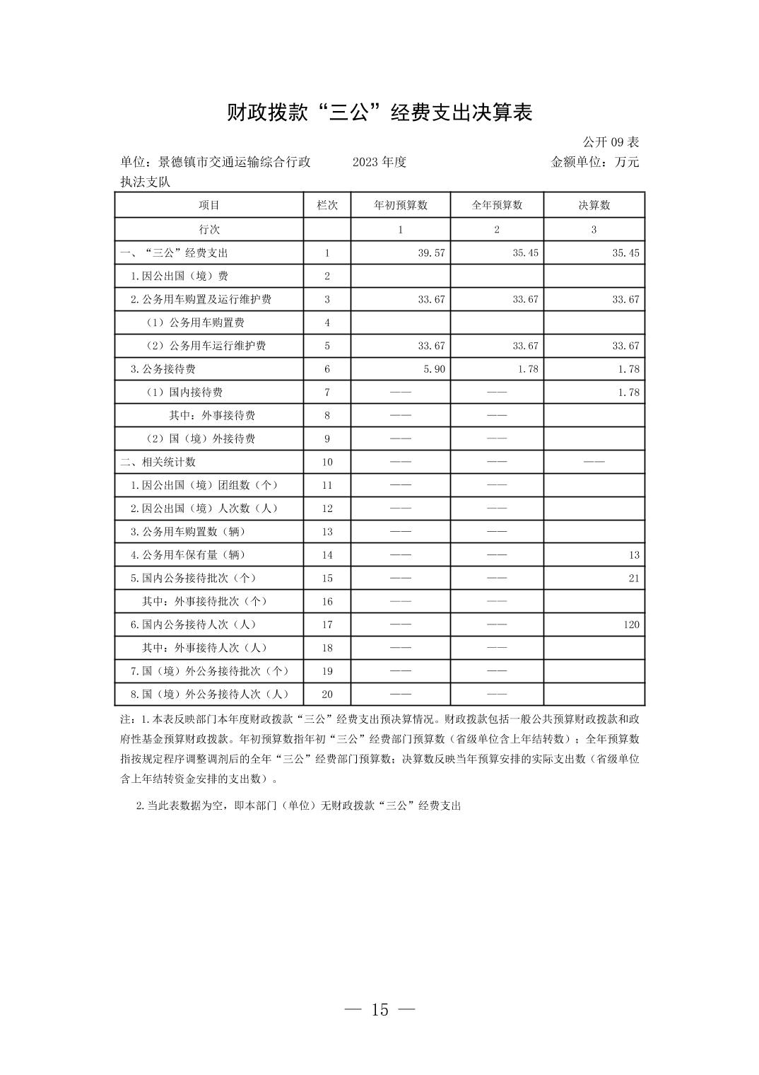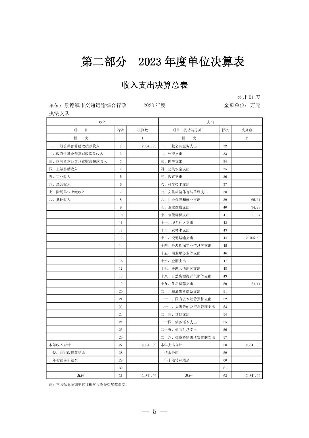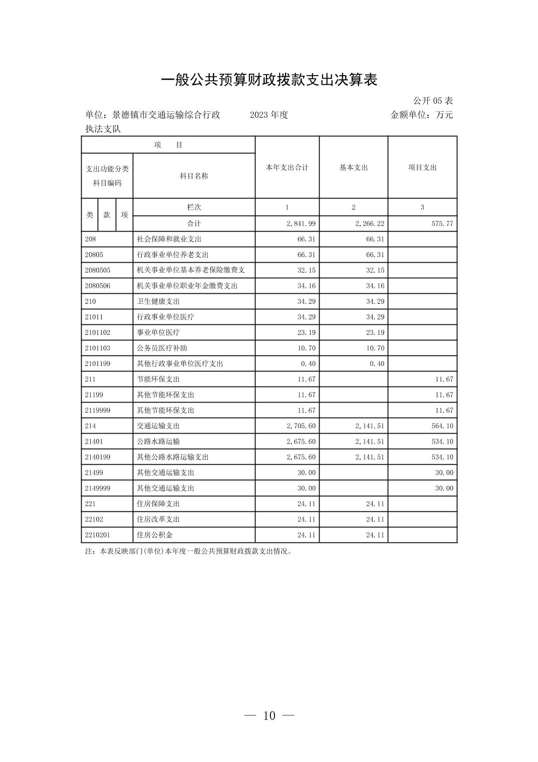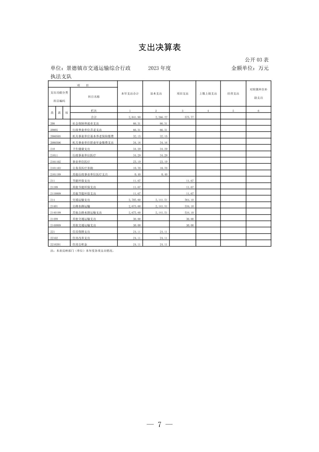 景德镇市交通运输综合行政执法支队2023年单位决算