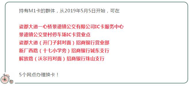 根据交通运输部关于已开通公交“一卡通”的区域,将全面停止现行的M1卡(不含学生卡、老年卡和“爱心卡”)的相关技术支持和服务的要求,景德镇公交有限公司将联合招商银行景德镇分行联合发行“交通联合卡”,取代现行的公交M1卡。