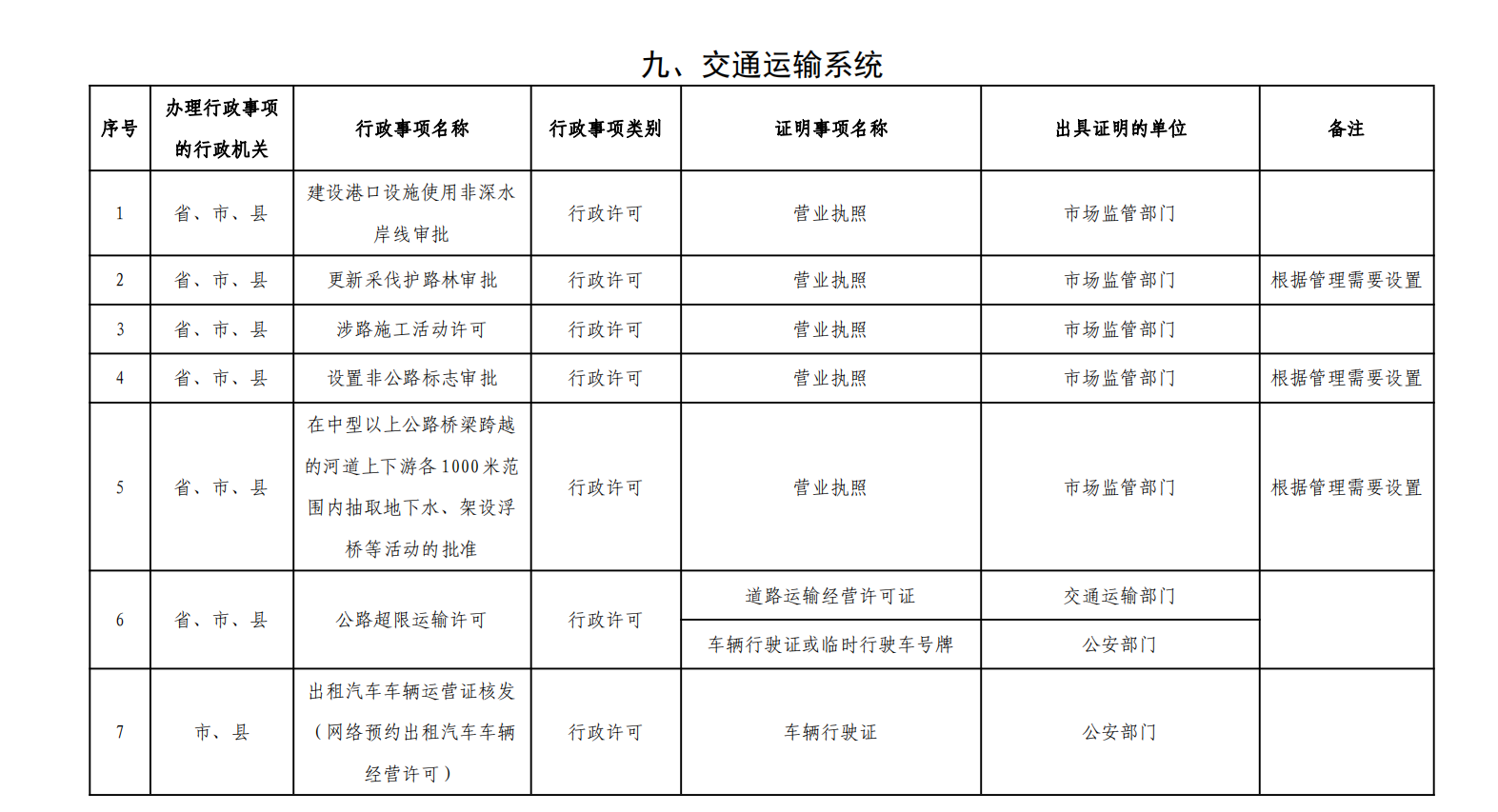 景德镇市交通运输局实施告知承诺制证明事项目录清单