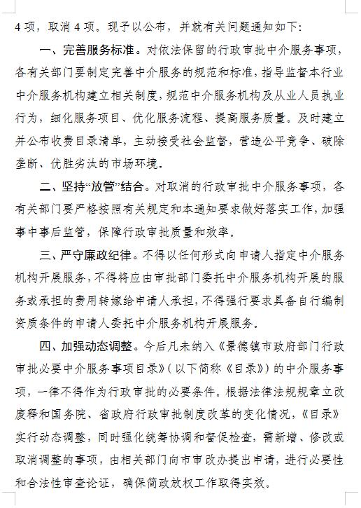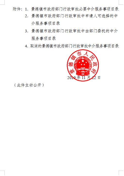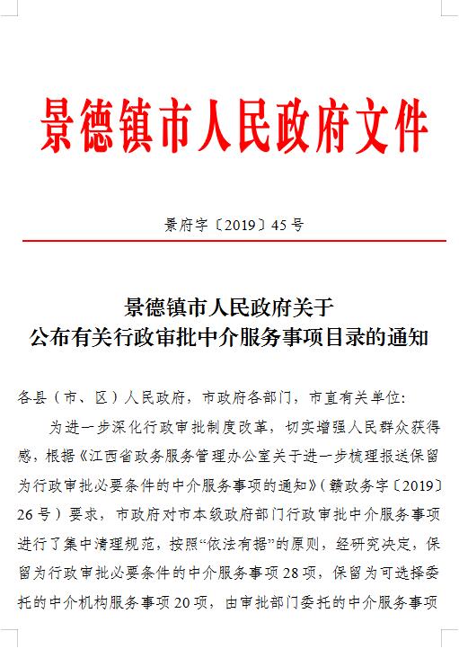景德镇市人民政府关于公布有关行政审批中介服务事项目录的通知