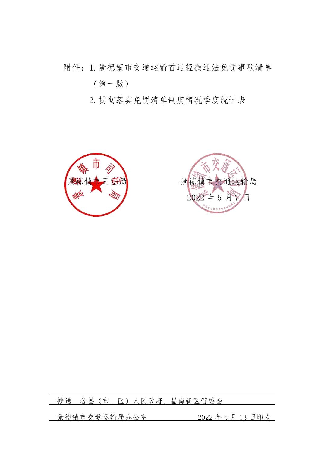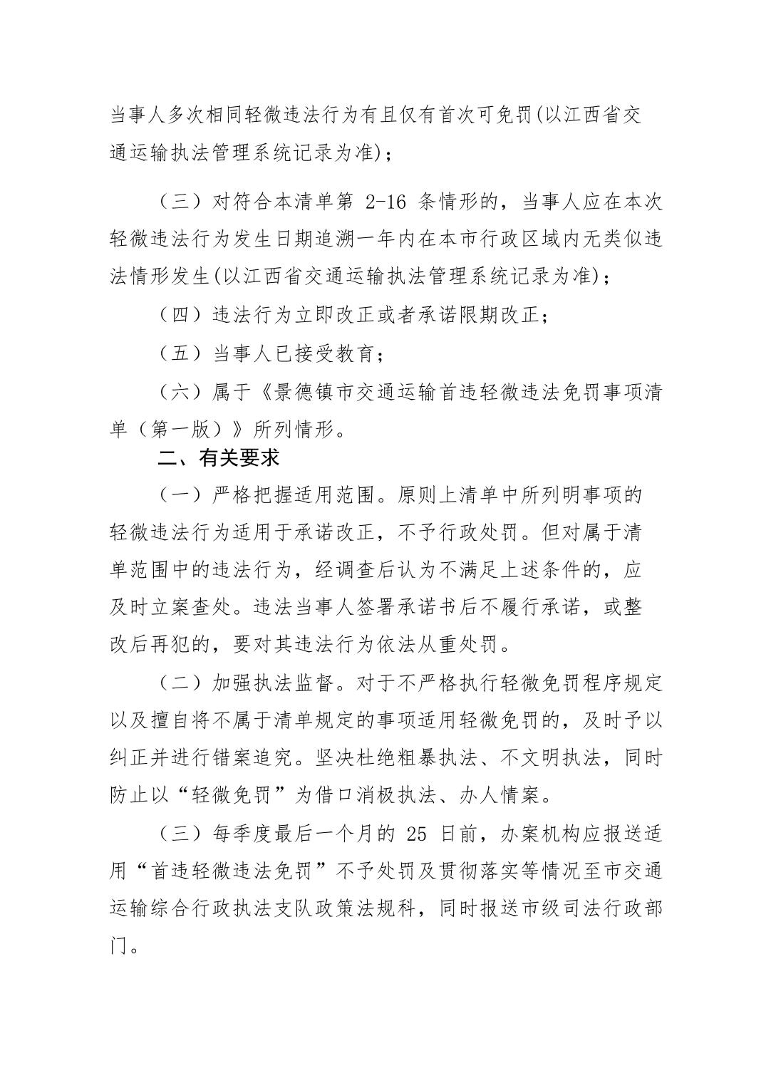 关于印发《景德镇市交通运输首违轻微违法免罚事项清单(第一版)》的通知
