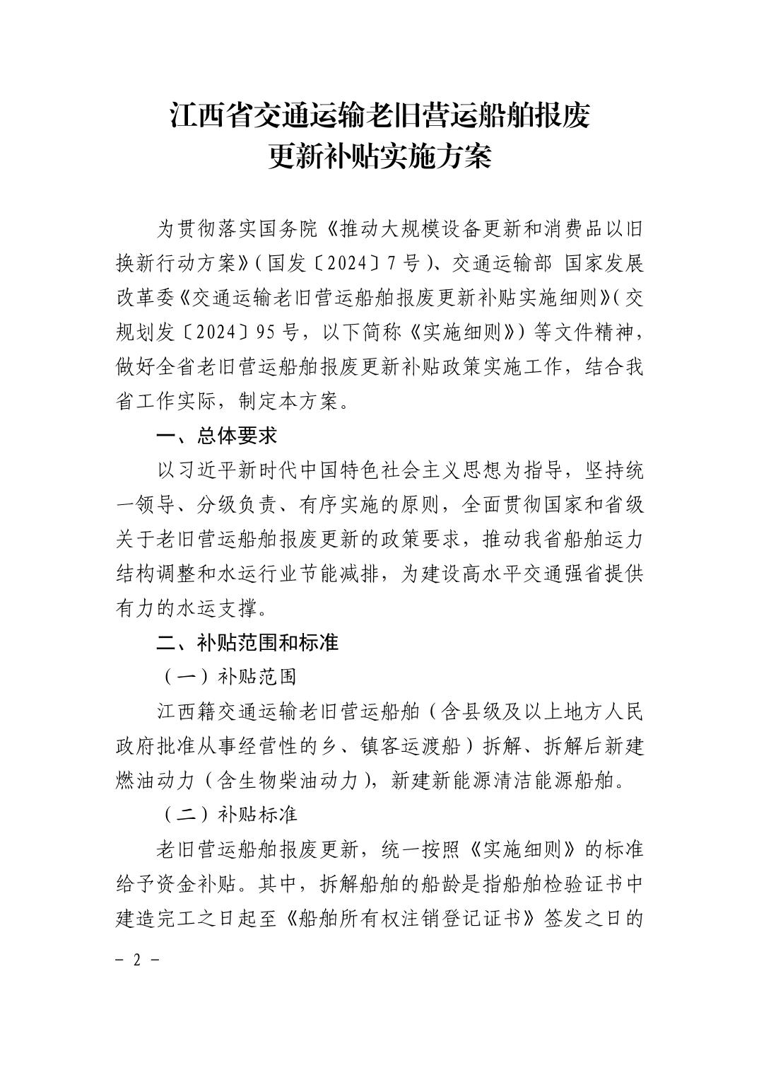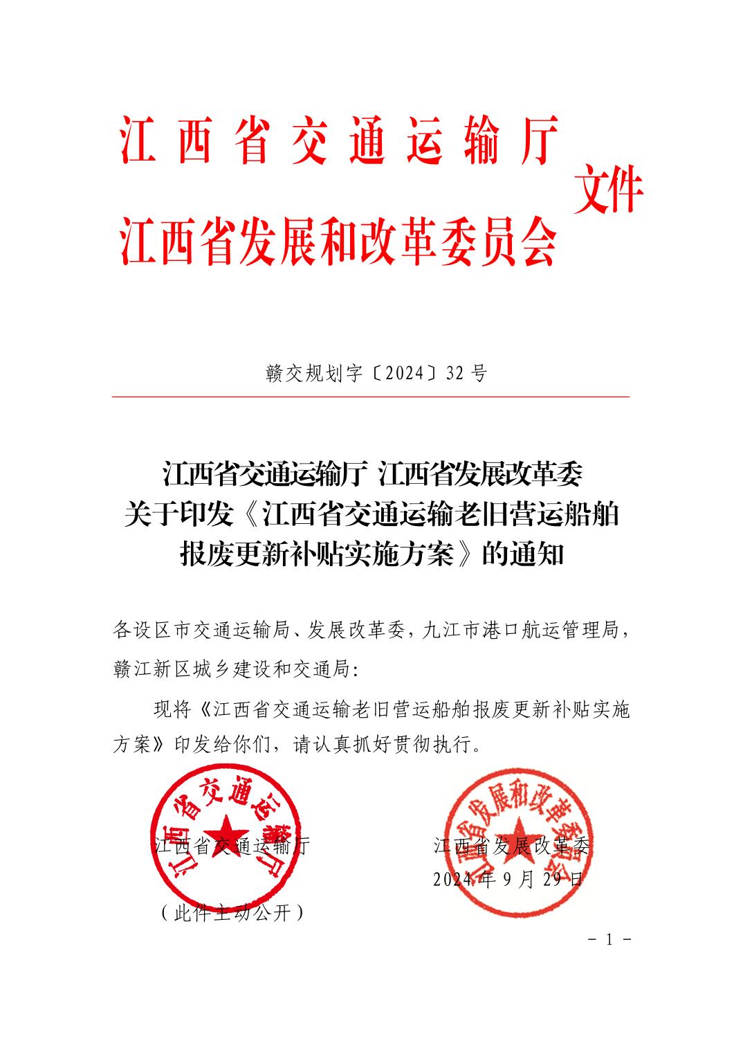 江西省交通运输厅 江西省发展改革委关于印发《江西省交通运输老旧营运船舶报废更新补贴实施方案》的通知